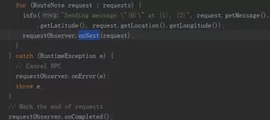通过在循环中调用 requestObserver 的 onNext 方法,发送请求消息,代码如下所示: