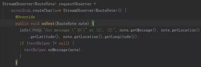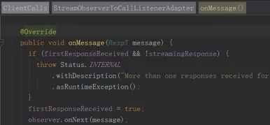 当收到响应消息时,调用 StreamObserver 的 onNext 方法,代码如下: