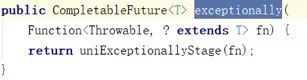 也可以通过 exceptionally 方法来处理异步执行发生的异常,相关接口如下所示: