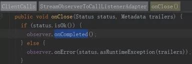 当 Streaming 关闭时,调用 onCompleted 方法,如下所示: