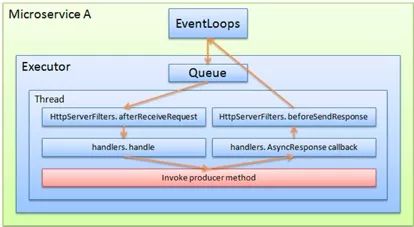 当 operation 返回值为 CompletableFuture 类型时,默认此 operation 工作于 reactive 模式,此时如果需要强制此 operation 工作于线程池模式,需要在微服务的配置文件中(microservice.yaml)中明确配置,指定业务线程池。这样业务逻辑的执行就可以由 eventloop 线程(I/O 线程)切换到业务线程。