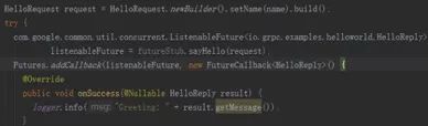 接着我们分析下 ListenableFuture 的实现原理,ListenableFuture 的具体实现类是 GrpcFuture,代码如下: