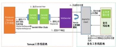 Tomcat + Servlet3 的异步化处理原理如下所示: