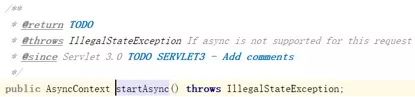 通过 request 获取异步上下文 AsyncContext, AsyncContext context = request.startAsync(), 相关接口定义如下: