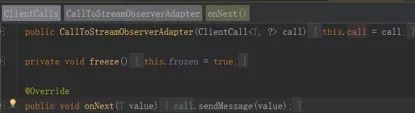 requestObserver 的 onNext 方法实际调用了 ClientCall 的消息发送方法,代码如下:
