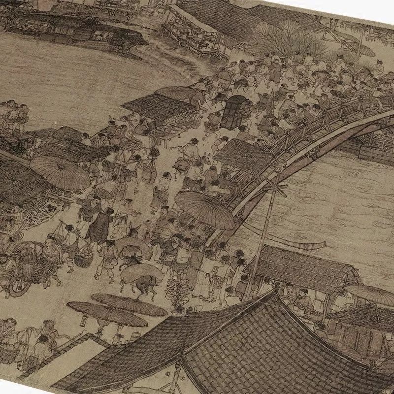 举世闻名的《清明上河图》也诞生于北宋末年,这幅画生动记录了当时都城东京(今河南开封)的城市面貌和社会各阶层人民的生活状况,在五米多长的画卷里,描绘了数量庞大的各色人物,牛、骡、驴等牲畜,车、轿、大小船只、房屋、桥梁、城楼等,各有特色。宋徽宗是《清明上河图》的第一个收藏人,他用独创的瘦金体书写了"清明上河图"的题字。