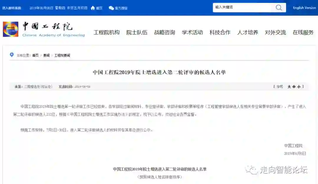 近日,中国工程院2019年院士增选第一轮评审工作已经结束,产生了进入第二轮评审的候选人222位。本文来自:中国工程院官网,由《走向智能论坛》公号推荐阅读。
