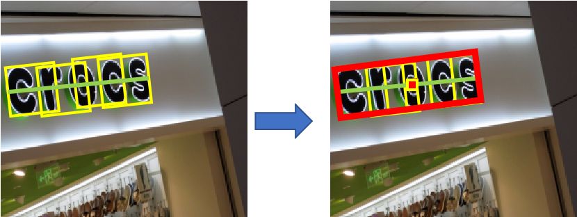 最后基于检测出的小文字块以及文字块连接,组合出文本框(