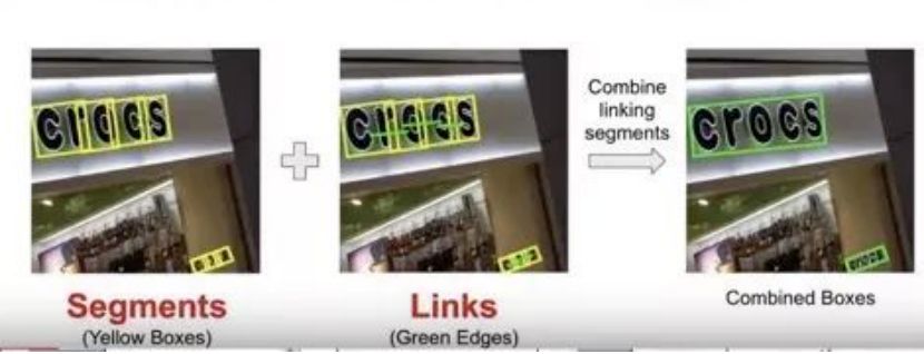 )。此外,为了处理各种方向文字,在不同尺度的特征图上预测文字片段以及片段之间的连接关系,然后对预测出的文字片段和连接关系进行组合,得到最终文本框。下面将具体介绍方法。