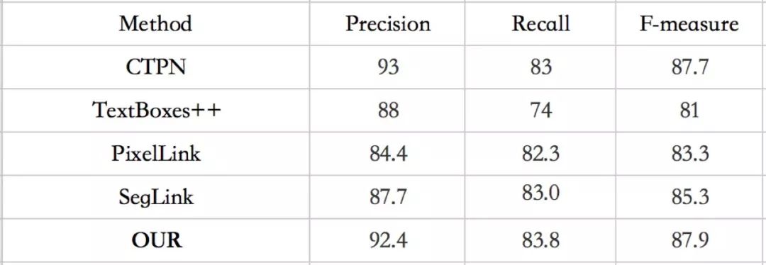 表 2. ICDAR2013数据集与其他方法比较