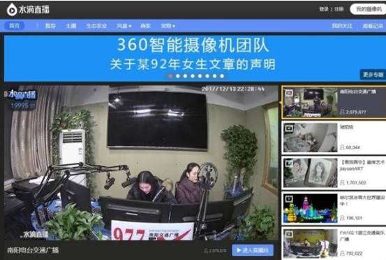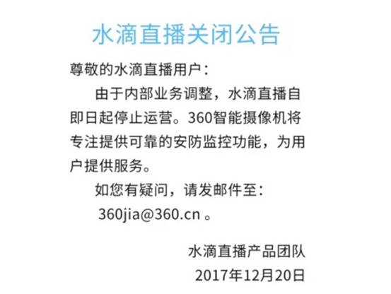 前一段,360水滴摄像头涉嫌泄漏隐私事件闹得沸沸扬扬,12月20日早间,360公司宣布:主动、永久关闭水滴直播平台。