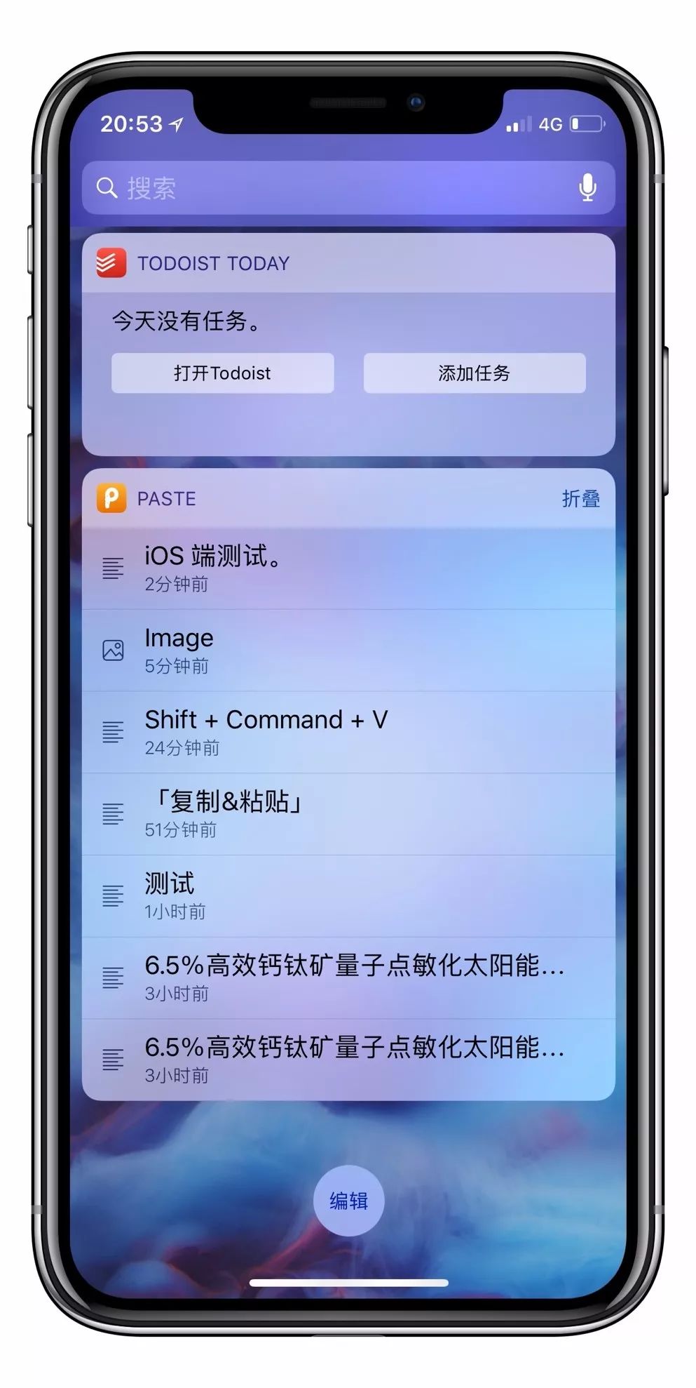 值得一提的是,Paste 2 在 iOS 端还加入了小组件。因为不像 macOS 上支持快捷键操作,所以开发者通过通知中心让用户快速的查看剪贴板列表和剪切版的变化。