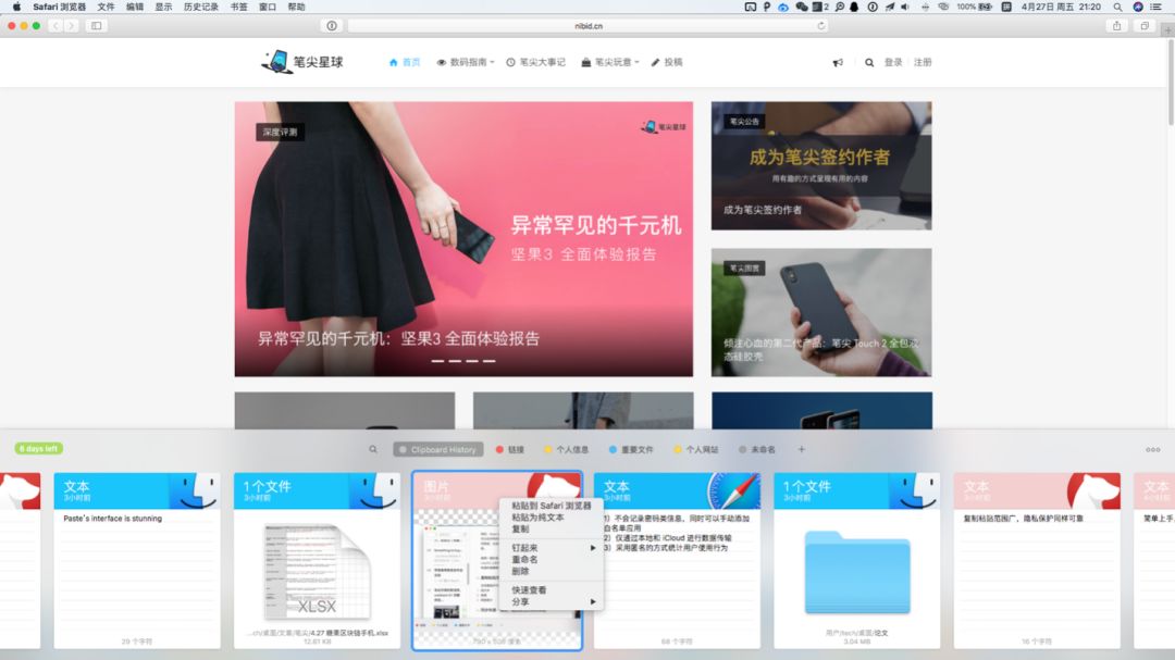 整体给人的感觉就是,界面相当精致、漂亮,让人有一种仿若 macOS 原生软件的错觉。就像 Macworld 中对 Paste 的评价一样“Paste’s interface is stunning”,相信你上手也一定会感同身受。