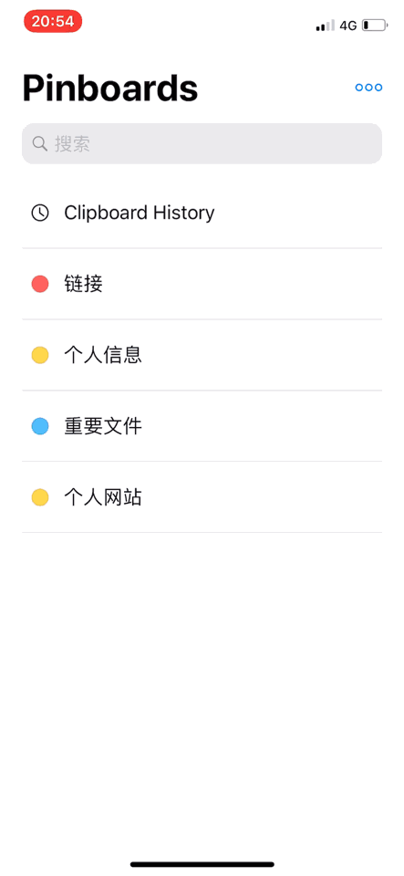 支持用户自己创建 Pinboard,也就是我们平时所说的“文件夹”。可以将自己经常要用到的一些信息,比如“个人网站信息”、“地址”等分类到这些文件夹中,方便你在需要它的时候,快速找到。