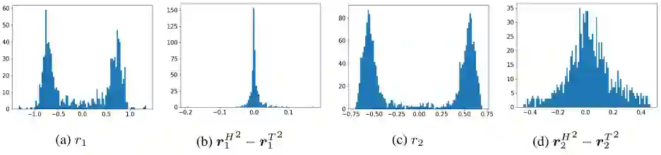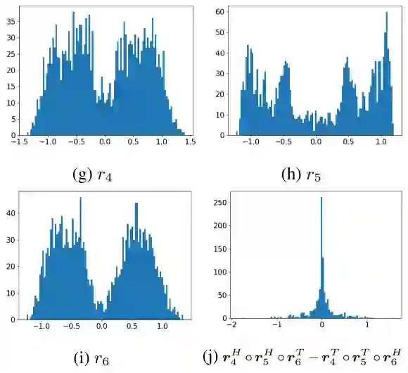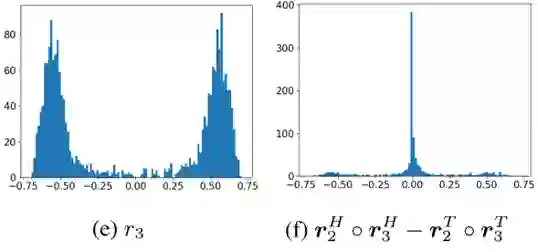 对于关系模式问题,论文在嵌入向量维度为500下取DB100k中的对称关系r_1:spouse和非对称关系r_2:tv_station/owner,对称关系编码满足r^(H^2 )=r^(T^2 ),编码效果如下: