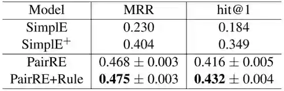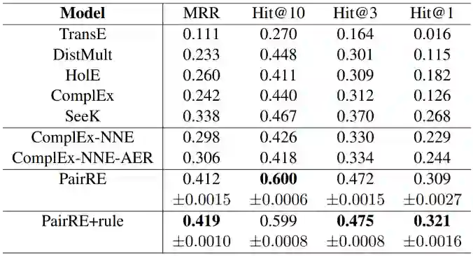 PairRE和其他方法的结果比较如下