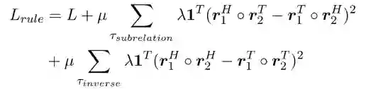 论文还针对子关系模式做了补充实验,将PairRE同ComplEx-NNE-AER和SimplE^+进行对比,这两种方法通过设计子关系规则进行语义匹配。论文同时借鉴了ComplEx-NNE-AER中的规则,对本来的损失函数进行改变如下: