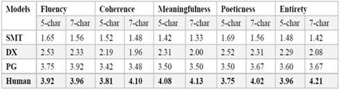 平仄也符合,押韵也符合,诗意也还不错。我估计现在在座的80%的同学作诗作不过这个系统。我们也做过测试,就是把计算机产生的诗和古诗放在一起让人打分。我们的系统得分比古人还是略差,但是已经有一定的可比性了。