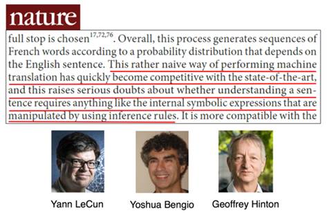 神经网络模型,也就是现在说的Deep Learning(深度学习)神经网络模型。它终结了IBM模型1-5,翻译结果有明显的提升,使得像Google、微软、百度等的互联网翻译服务升级。LSTM我们把它叫做端到端的方法,Yann LeCun、YoshuaBengio和Geoffrey Hinton这三位就在《Nature》上表示,端到端的机器翻译有可能终结整个传统的机器翻译系统,虽然当时端到端,也就是LSTM的效果还没有完全超过传统的模型。