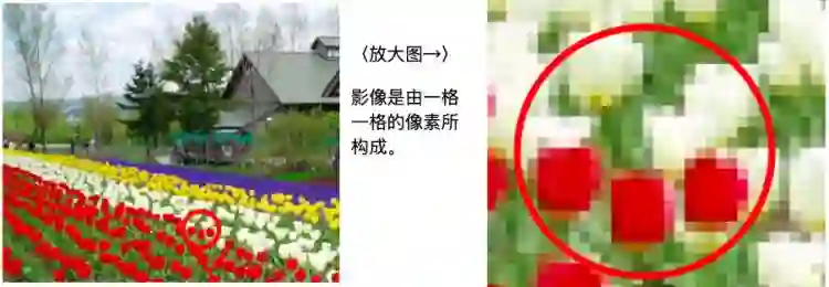 如果将一幅图片放大,就可以看到构成图片的小方块