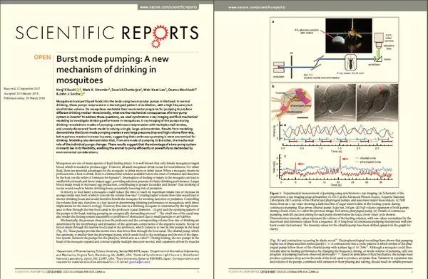 研究团队有了惊人的发现,他们的研究结果发表在2018年2月的《科学报告(Scientific Reports)》期刊上,文章描述他们发现了蚊子的一种前所未见的“爆发式”吮吸模式。