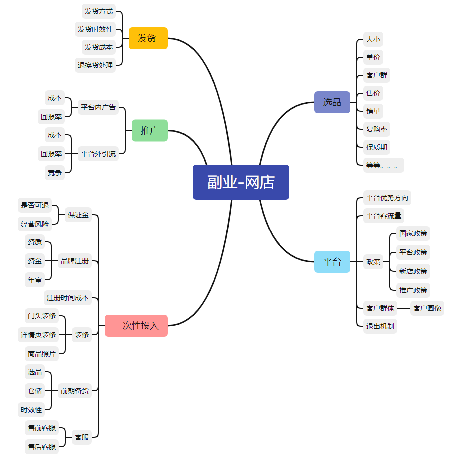 这里用开网店做例子进行一下简单分析,大家了解了思路就可以了——毕竟每个行当,每个阶段,甚至每个时间段需要考虑的因素都不一样。