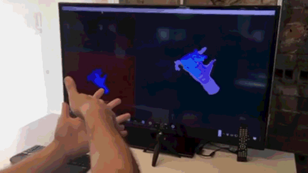 视频中他们还将Perceptive.IO的手部追踪系统和Leap Motion进行比较,可以看到动图中的骨骼式关节追踪方案在处理双手时出现了明显的问题,而Perceptive.IO则不会。