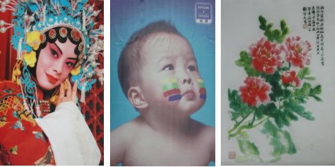 图4 利用纳米印刷技术在瓷砖、丝绸和玻璃上打印图案