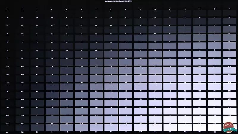 在 4K 清晰度与灰阶测试中,乐视超 4 X55M 综合表现十分优秀,特别是灰阶测试中,图中分布的每一个色块几乎都能较好的显示;而在清晰度方面,线条以及区块字体也能清晰展示,细腻程度可圈可点。