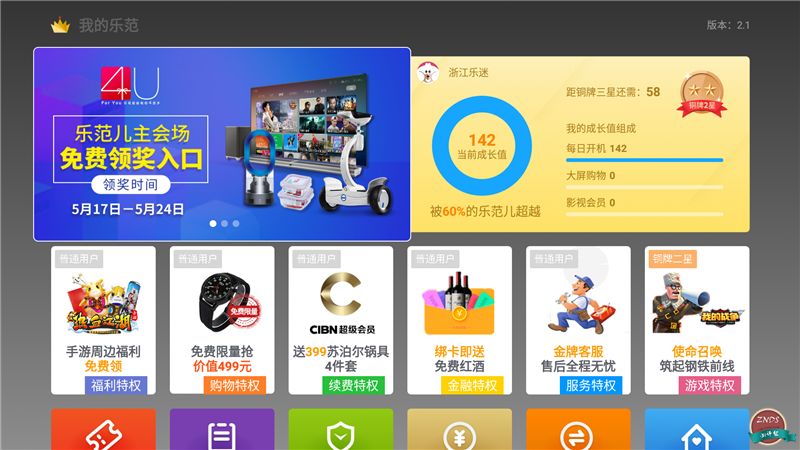 值得说明的是,在 4 周年发布会上,乐视提出了一个“共享电视”的概念,即“续杯”模式。按照规则,在乐视超 4 X55M 上进入乐范儿完成任务,再加购 1 年 490 超级影视会员即可获得最多 4 年超级影视会员。“续杯”任务分为“年度开机到达 277 天”、“乐范成长值年度增加 3000”、“购买服务大礼包”三个,用户只需达成任意一个即可获得 1 年超级影视会员。实际上,这对于基础乐视超级电视用户来说,肯定是一件不错的模式,因为乐视超级电视基本上就是固定在影视会员编制下的(非会员用户仅能观看流畅清晰度视频,体验不佳),想要获得出色的电视使用感,影视会员不可缺少,而续杯活动就是在一定程度缓解用户使用成本。从“续杯”模式的开发来说,它一方面是是乐视针对基础用户群的实惠选择,另一方面也是乐视增加保有流量的途径。