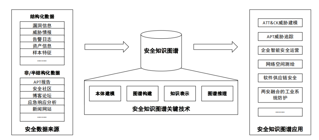 安全知识图谱作为一种实体和概念等安全知识的高效组织形式,能够发挥其知识整合的优势,将零散分布的多源异构的安全数据组织起来,为网络安全空间的威胁建模、风险分析、攻击推理等提供数据分析和知识推理方面的支持。