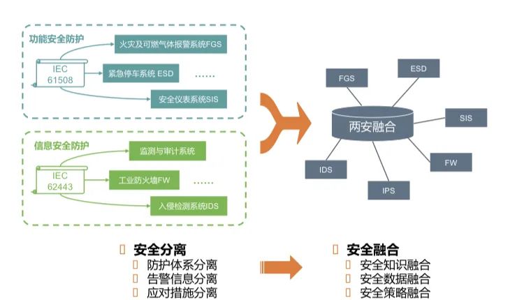 未来安全防护的趋势是将功能安全与信息安全相结合,以业务系统功能安全(Safety)的可用 性为目标和约束,再考虑信息安全(Security),通过对两类安全防护能力的优化设计,消除冲突,实现工业系统的两安融合,降低信息物理融合带来的信息安全风险。
