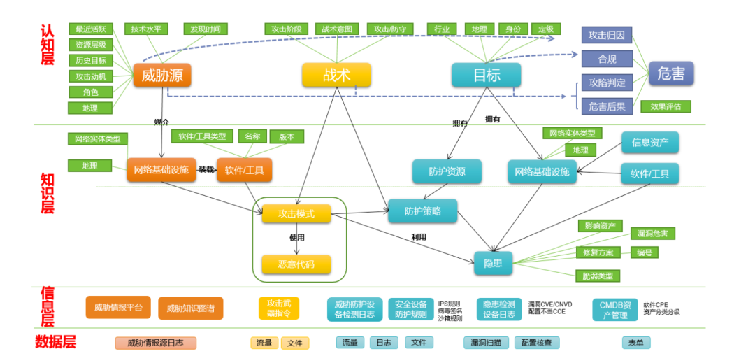 3)Cyber threats:潜在的网络威胁,如攻击告警、 CAPEC 攻击模式、 ATT&CK 攻击 技术等。