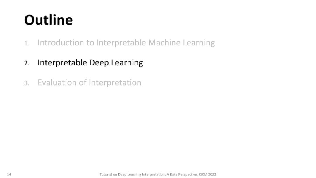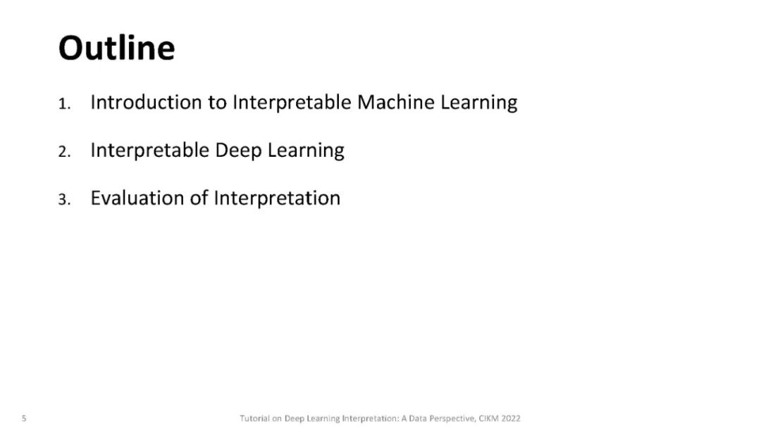 在本教程中,将介绍深度学习解释的基本定义和术语。我们的教程分为四个部分:(i)图像分类的解释; 对文本的解释;(iii)图的解释,(IV)解释深度强化学习。我们还将详细介绍目前流行的可解释模型,并强调它们的优点和局限性。本教程的学习成果如下:(1)了解主流可解释模型的理论动机、分类和理论表述。(2)比较目前流行的可解释模型的优点和局限性,并提出推广这些方法的可能机会。(3)通过编码、训练和可视化指导原则,介绍在解释图像、NLP、图表和深度强化学习的预测DNN方面的实际应用。