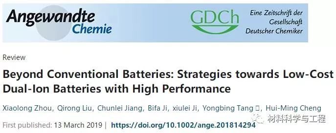 近日,中国科学院深圳先进技术研究院集成所功能薄膜材料研究中心研究员唐永炳联合清华-伯克利深圳学院中科院院士成会明、美国俄勒冈州立大学教授纪秀磊,及其团队成员周小龙、刘齐荣、蒋春磊等在《德国应用化学》(Angewandte Chemie International Edition)上发表新型双离子电池综述,全面评述了高效低成本双离子电池的最新进展和发展策略。