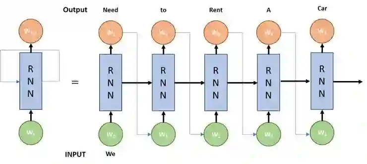 在递归神经网络的每次迭代中,模型都会将之前遇到的单词存储在内存中,并计算下一个单词的概率。例如,如果模型生成了文本 We need to rent a __,那么它现在就必须计算出这句子中的下一个单词。对于词典的每个单词,模型根据它所看到的前一个单词来分配概率。在我们的这个示例中,house 或 car 这两个词的概率要比 river 或 dinner 这样的单词高得多。然后选择概率最高的单词并将其存储在内存中,然后模型继续进行下一次迭代。