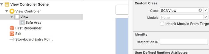然后修改Storyboard中ViewController的View的类型为SCNView。