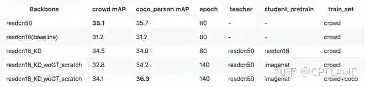 centerX_KD是用27.9的resnet18作为学生网络,33.2的resnet50作为老师网络蒸馏得到的结果,详细过程在在下面的章节会讲。