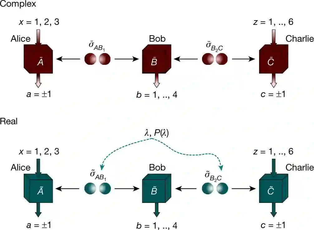 分离实数量子理论和复数量子理论的网络场景。