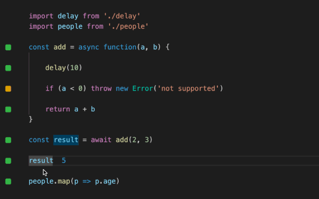 Quokka.js 会在你输入时自动计算结果,并在 IDE 中打印结果。