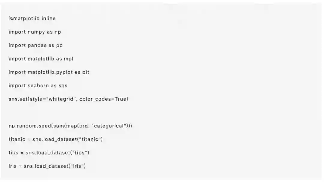 我们之前探讨了如何使用散点图和回归模型拟合来可视化两个变量之间的关系,以及如何在其他分类变量的层次之间进行展示。 当然,还有一大类问题就是分类数据的问题了? 在这种情况下,散点图和回归模型方法将不起作用。当然,有几个观察可视化这种关系的选择,我们将在本章中讨论。