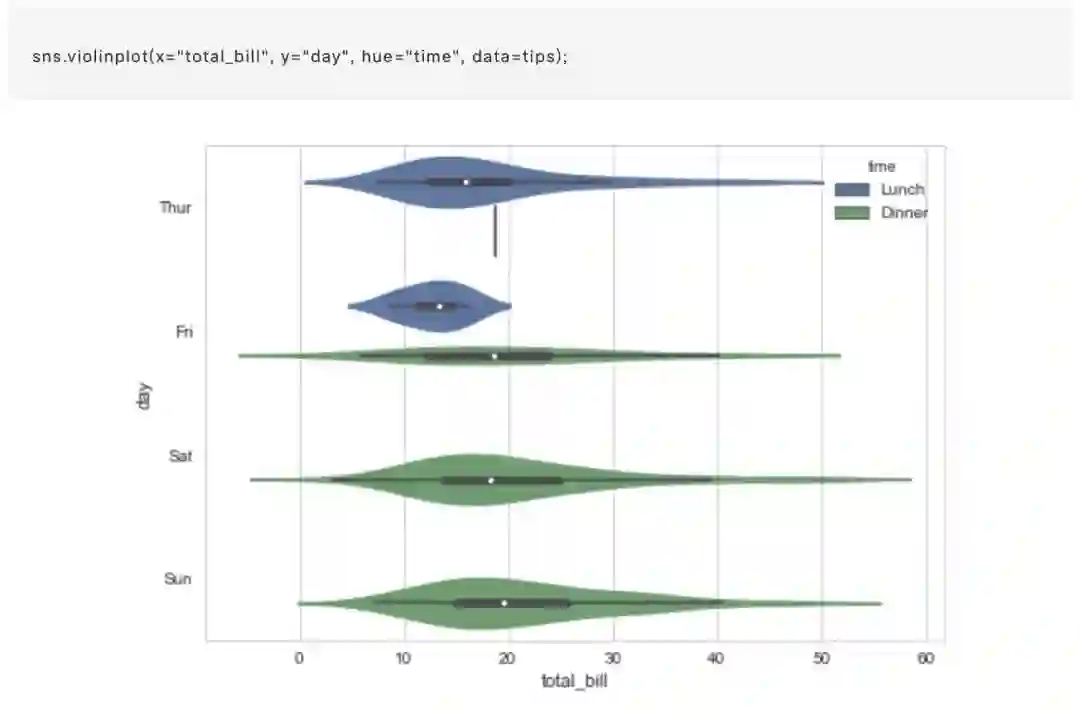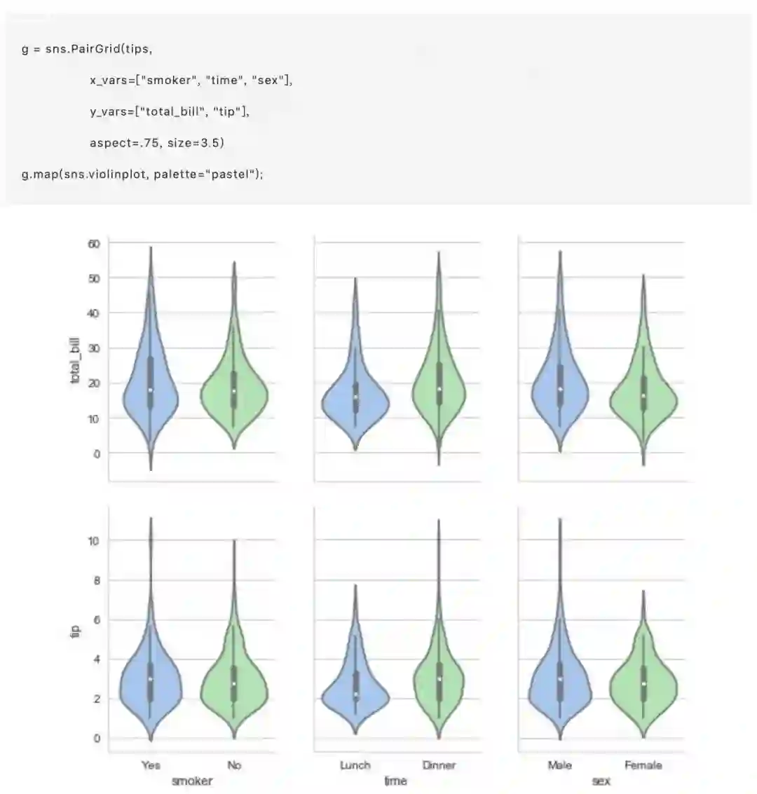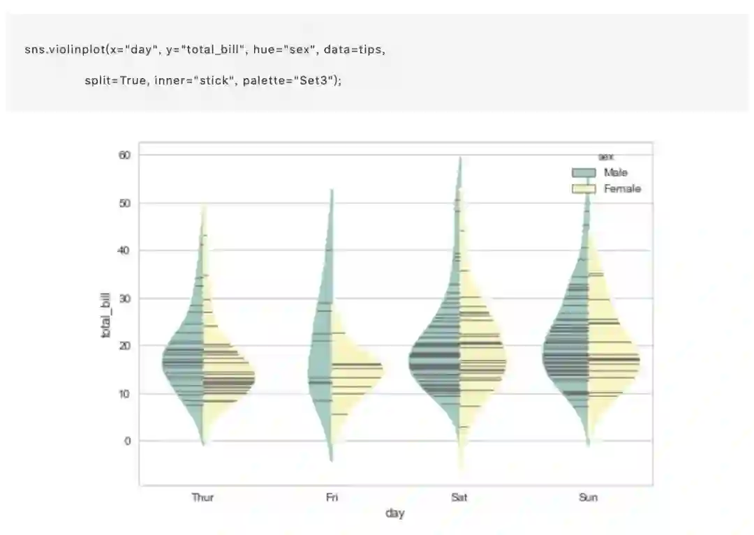 分类散点图固然简单实用,但在某些特定的的情况下,他们可以提供的值的分布信息会变得及其有限(并不明晰)。 有几种方式可以方便的解决这个问题,在类别之间进行简单比较并汇总信息,我们快速讨论并比较一些适合这类数据观测的函数。
