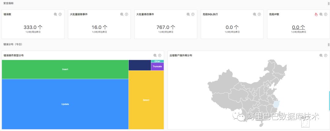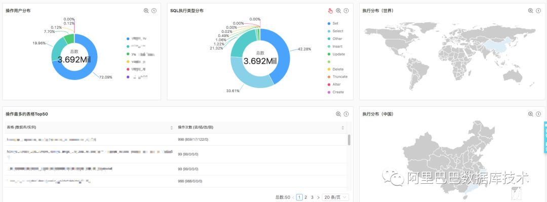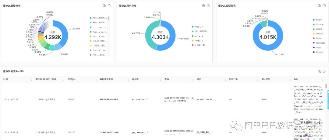 实时分析:依托日志服务,提供 SQL 实时分析、开箱即用的报表中心并支持自定义报表和下钻分析,全面洞察SQL执行状况、性能、安全问题。