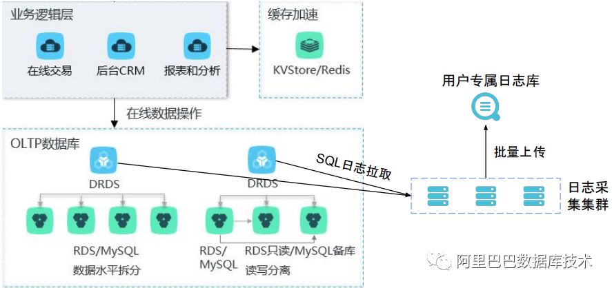 性能无损:实时拉取 DRDS 节点 SQL 日志文件上传,支持秒级延迟,对实例本身性能无影响