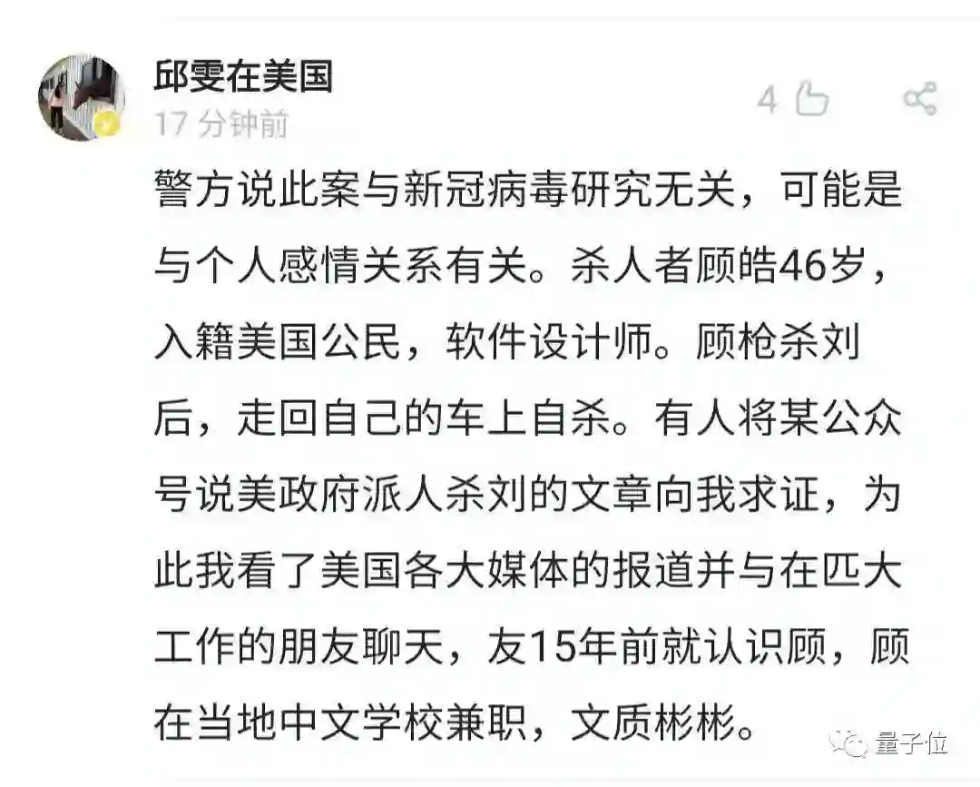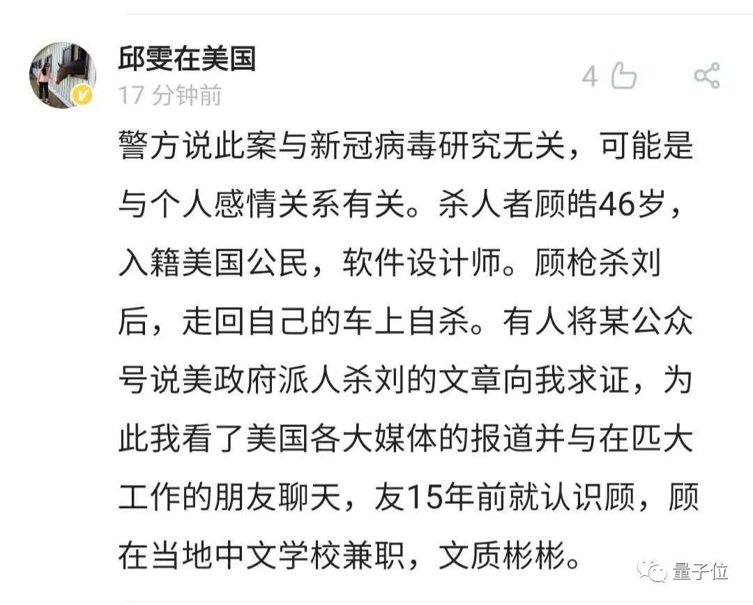 一个攻坚新冠病毒的华裔科学家,近日突遭枪杀。
