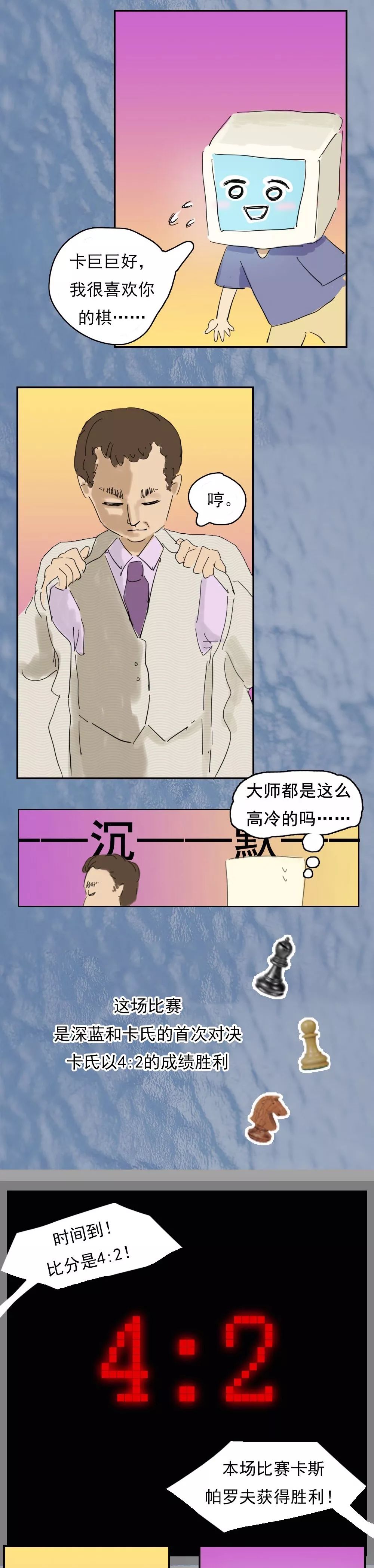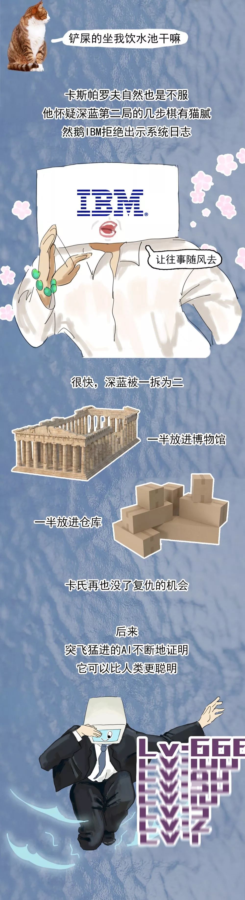 那是一次真正的世纪之战人类的一小跪机器的一大步从此人类再也不敢怀疑机器比人类更聪明22年前的这场国际象棋大战让棋艺大师卡斯帕罗夫彻夜难眠在1997年那个5月卡氏的对手不是人类而是来自IBM的国际象棋机器人深蓝!当时的卡斯帕罗夫11次获得国际象棋奥斯卡奖被认为是有史以来最强的棋手之一然鹅和深蓝对抗的决胜局他向“深蓝”交出膝盖的时候才走了19步深蓝是个体重1270公斤拥有32个大脑的大块头每秒可以计算2亿步棋脑子里装了近200年的棋局数据而它的必杀技是暴力穷举按照国际象棋的规则一局棋最多只能下5949回合而所谓暴力穷举就是深蓝尽量把每种棋局都算一遍总有一款能制服你深蓝手握着最佳答案在PK它当然不是一开始就这么厉害稚嫩版深蓝曾在1996年以2:4比分输给卡斯帕罗夫那时的卡氏留下一句话“这些计算机天生就蠢”深蓝肯定不服啊赶紧找了一屋子西洋棋大咖加班996给自己补充营养深蓝终于变成了比深蓝更蓝的Deeper Blue 深深蓝1997年5月深蓝和卡斯帕罗夫再次约架蓝别三日当刮目相待此时的深蓝已经如同一个杀手它不知疲倦也不会有心理起伏能干掉它的似乎只有拔电源六局pk中的前五局深蓝与卡斯帕罗夫打成平手决胜局赛前卡斯帕罗夫在房间里双手捂面嘴上说不怕,身体却很诚实当决胜局真正来临卡斯帕罗夫已经失去斗志随意下了几步后就选择了交出白旗机器终于第一次击败世界冠军卡斯帕罗夫自然也是不服的他怀疑深蓝第二局的几步棋有猫腻然而IBM拒绝出示系统日志很快深蓝被一拆为二一半放进博物馆一半封存到库房卡氏再也没了复仇的机会输给深蓝之前卡氏一度认为要到2010年机器才有机会战胜世界冠军但深蓝教会了卡氏怎么做人后来突飞猛进的AI 不断地证明它可以比人类更聪明但是我可以比你更善良啊