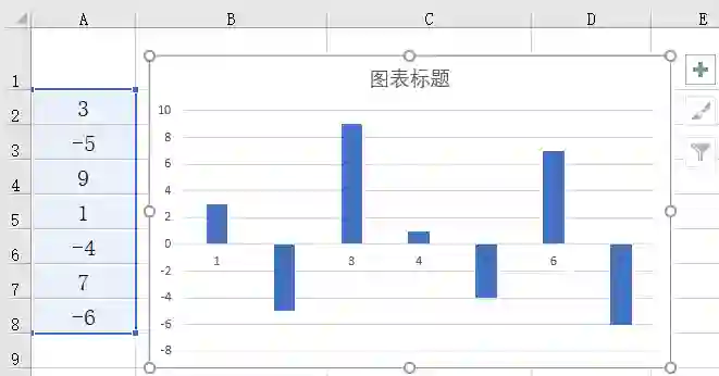 在自动生成的柱形图中,对正数和负数填充的是相同颜色,而对于需要展示的图表而言,正数和负数最好能以不同的填充颜色进行填充,本例介绍一种快速实现正负数填充不同颜色的方法。