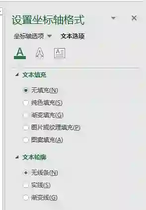 (3)右键单击“横坐标”选择“设置坐标轴格式”,单击“文本选项”中的“无填充”;
