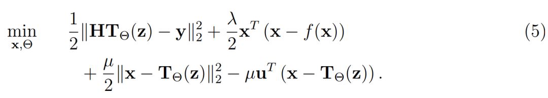 解决这一问题的方法是采用交替方向乘子法 [18]。从等式 (4) 开始,利用增广拉格朗日乘子法 (AL) 将约束项转化为惩罚项。