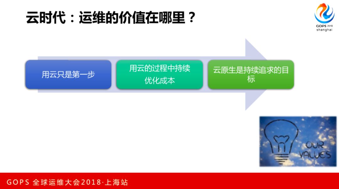 在云时代运维的价值是什么?用云是必须的,用云的过程中要持续优化成本,云原生是持续的追求目标。